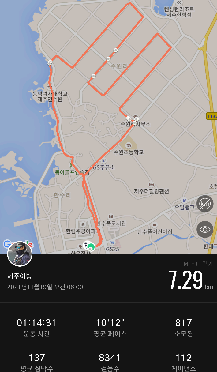 오늘 아침에 걷기 운동을 한 코스 입니다.ㅎ